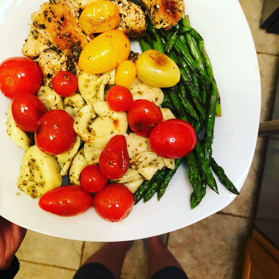 Ingredients 1 package cheese tortellini (I bought the fresh tortellini from Trader Joe’s) 1 cup (or a little more) mini heirloom tomatoes Asparagus (amount is up to you!) 1 grilled chicken breast Pesto Olive oil Instructions Boil water for tortellini While water is boiling, heat 1 tablespoon olive oil over medium heat, and cook chickenContinue reading “Chicken Tortellini Bowl”