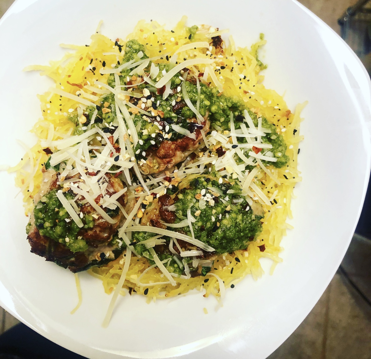 Turkey Meatballs with Baked Spaghetti Squash and Pesto