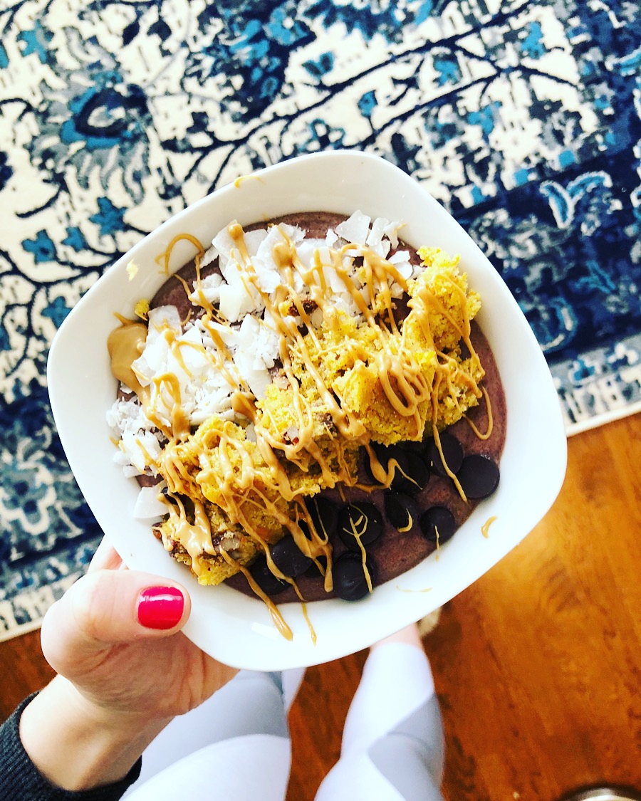 3) In a bowl mix 1/2 cup whole wheat (or gluten free) bread crumbs with 3 tablespoons Parmesan. In a separate bowl mix 2 teaspoons melted butter and 1 tablespoon olive oil